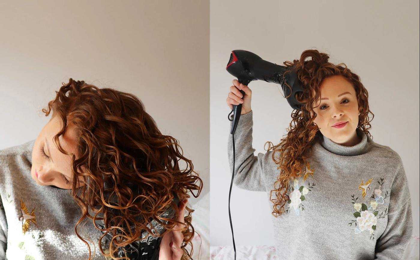 Когда волосы станут более гладкими, утяжеляются, нужно смыть кондиционер, следуя правилу: набрав воду в ладони и опустив туда волосы, необходимо смыть средство сжимающими движениями. Данный способ позволит часть кондиционера оставить на поверхности волос, при этом важно, чтобы не ощущался дискомфорт;. – высушить волосы с помощью полотенца из микрофибры, при этом промокать их нужно также сжимающими движениями, чтобы сохранить заданную форму завитка;