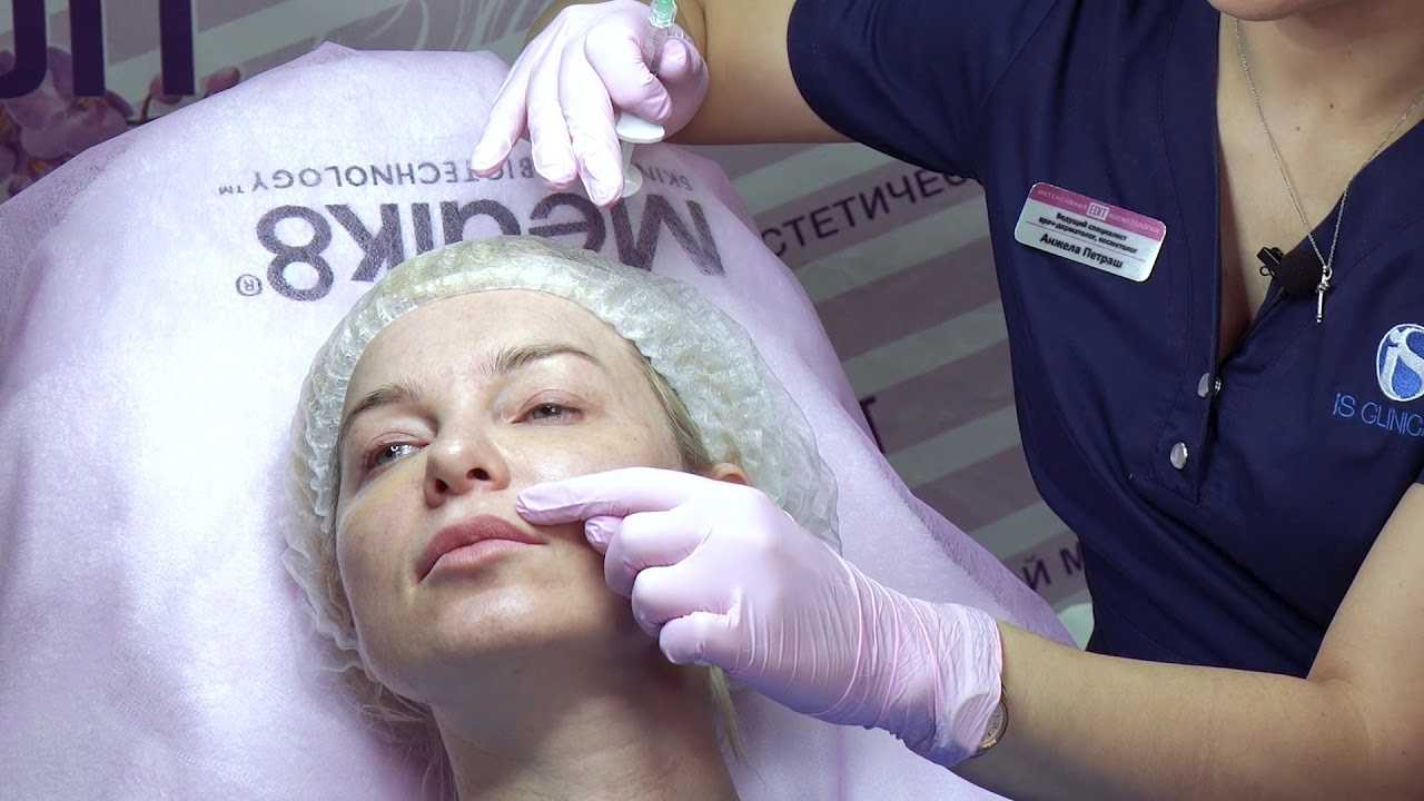 Пример инъекций Ботокса в область лба и межбровье с подробными пояснениями косметолога