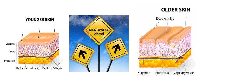 Менопаузальное (гормональное) старение – обусловлено недостаточным количеством эстрогенов в крови. Если просто и коротко, то у эпидермиса и фибропластов дермы есть рецепторы к эстрогенам. Поэтому, уменьшение содержания этого гормона отражается на качестве кожи, и интенсивности возрастных изменений, независимо от типов старения лица.