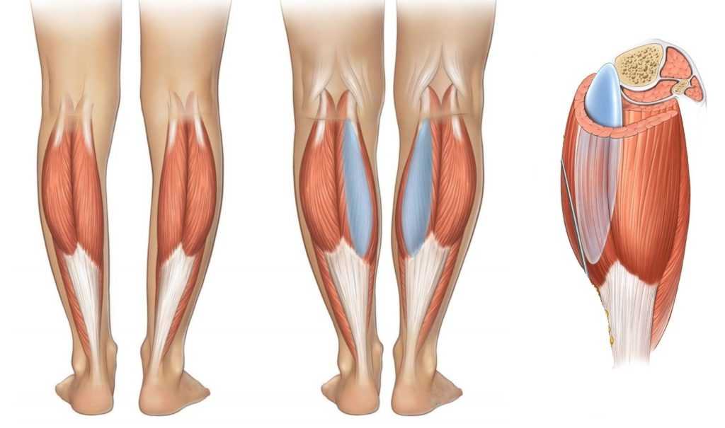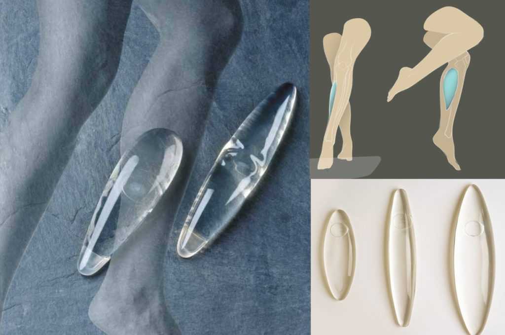 Место расположения импланта чаще всего зависит от его размеров. Небольшой размещают под фасцией – прослойкой соединительной ткани, которая служит своего рода футляром для мышц ноги. Вместе с подкожной жировой клетчаткой и кожей фасция надёжно прикрывает его, сглаживая очертания и создавая впечатление естественного объёма.
