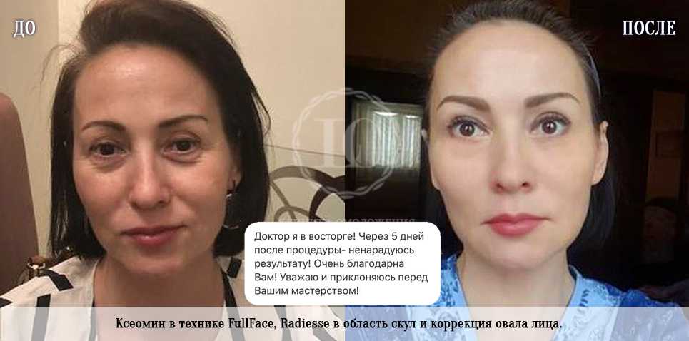 Овал лица выравнивается благодаря сглаживанию кожи на скулах, а поднятие верхнего края бровей делает взгляд более ясным. При всем этом сохраняется естественность внешнего вида — никакой искусственной натянутости кожи не наблюдается.