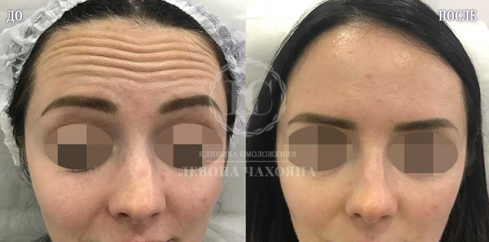 Омоложение лба. Морщины на этой подвижной части лица хорошо корректируются филлерами, которые заполняют глубокие складки. Однако не стоит ждать впечатляющего результата только от них. Часто косметологи комбинируют гиалуроновые препараты с уколами ботокса – в этом случае эффект может сохраняться 10-12 месяцев.