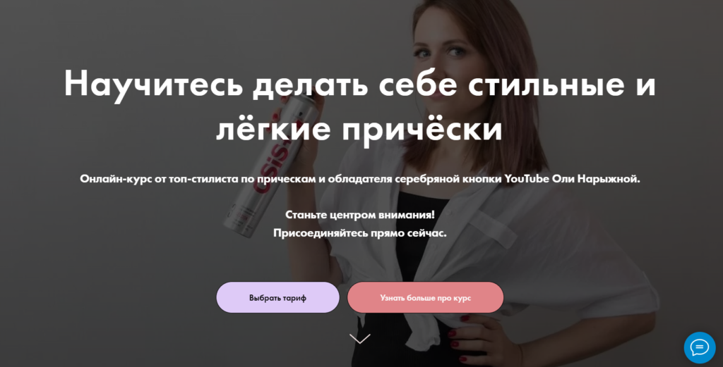 На авторском курсе узнаете 3 вида плетения, 2 техники локонов, 10 причесок. Автор — Оля Нарыжная, топ-стилист, обладатель золотого кубка в номинации «Прически из кос» и серебряной кнопки Youtube.