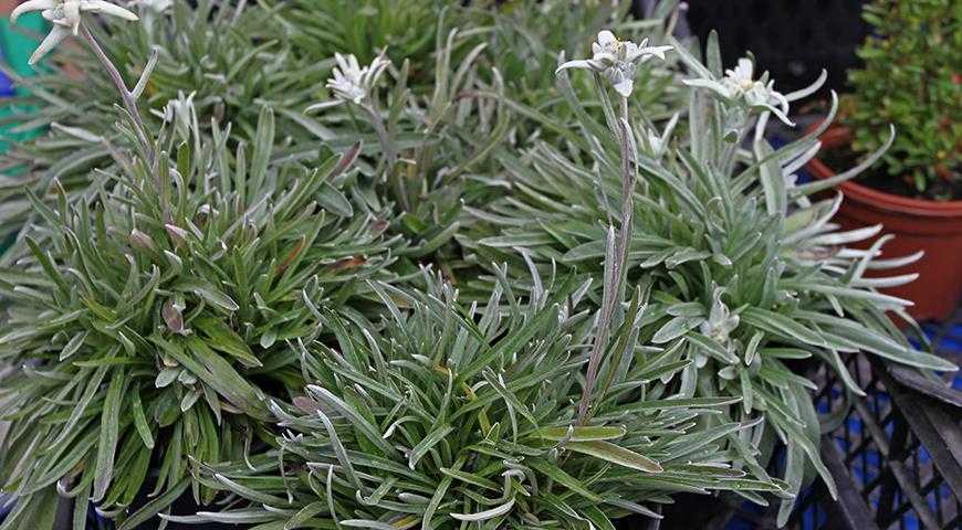 Контейнеры с кустиками эдельвейса для посадки в сад