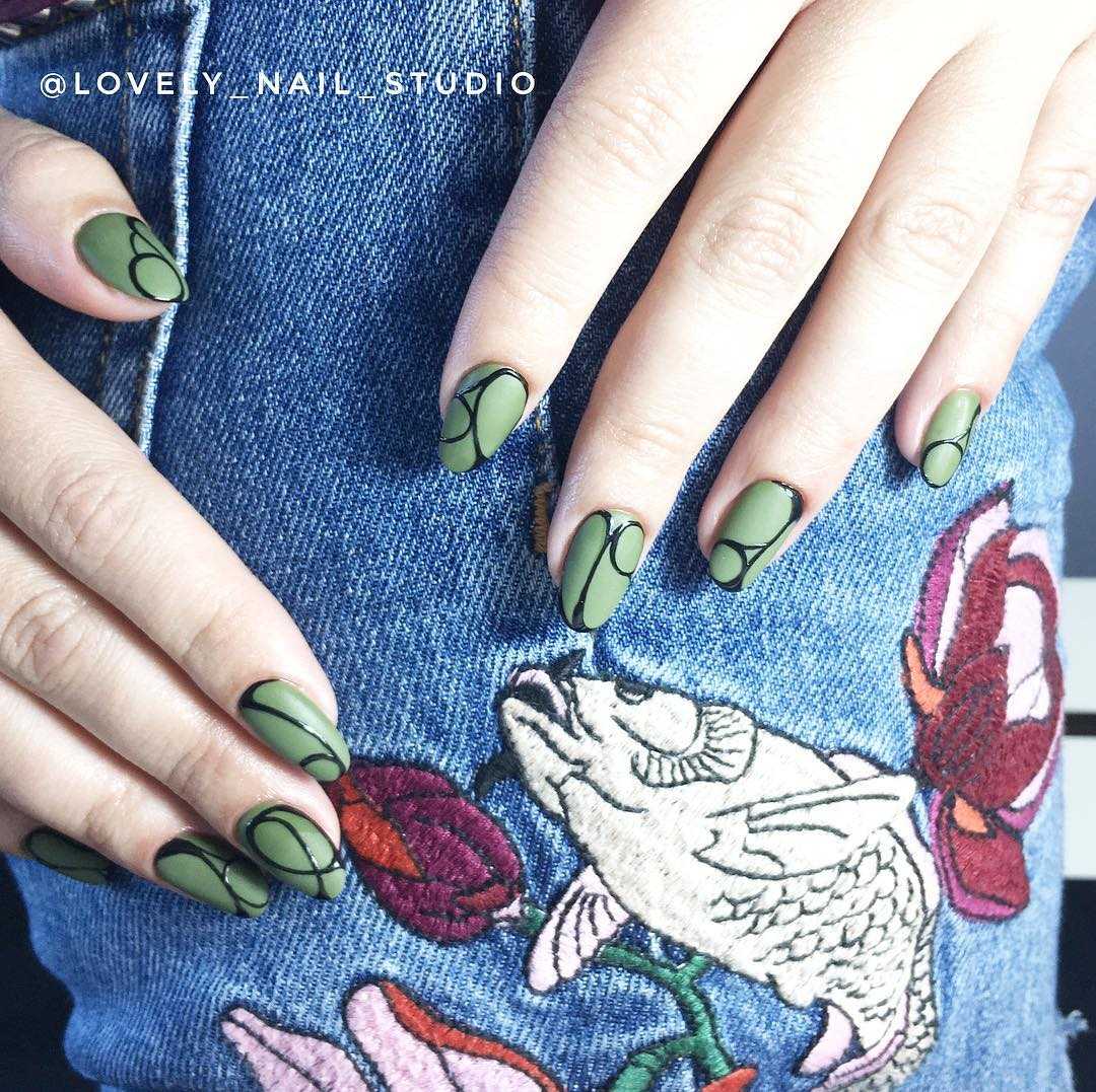 Матовый маникюр с глянцевым рисунком