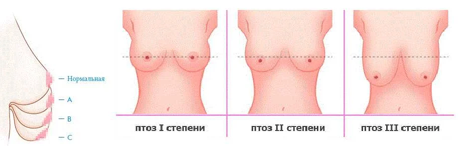 В медицине различают три стадии провисания молочных желез, если у пациента наблюдается первая или вторая степень птоза, то в этом случае применяется вертикальная мастопексия.