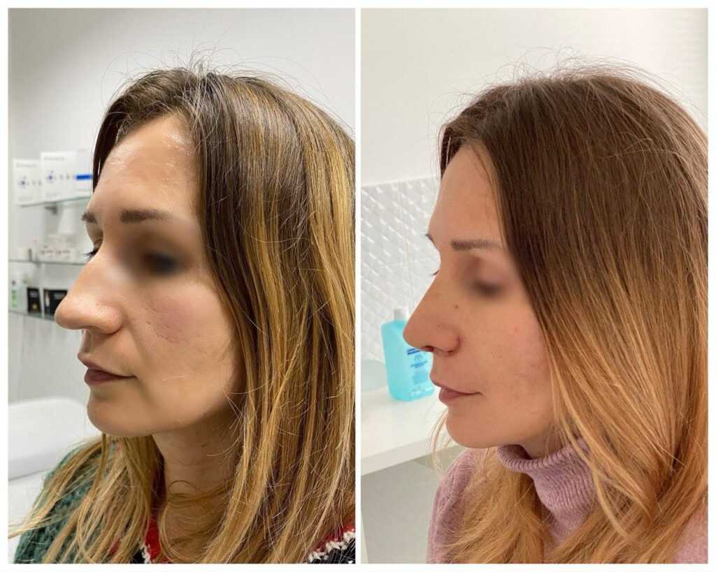 Растворение мягких тканей носа — относительно длительный процесс. Чтобы нанести здоровью наименьший вред и контролировать процесс изменения контуров, специалисты разбивают гормональную ринопластику на несколько сеансов. В целом длительность коррекции составляет 2-3 недели.