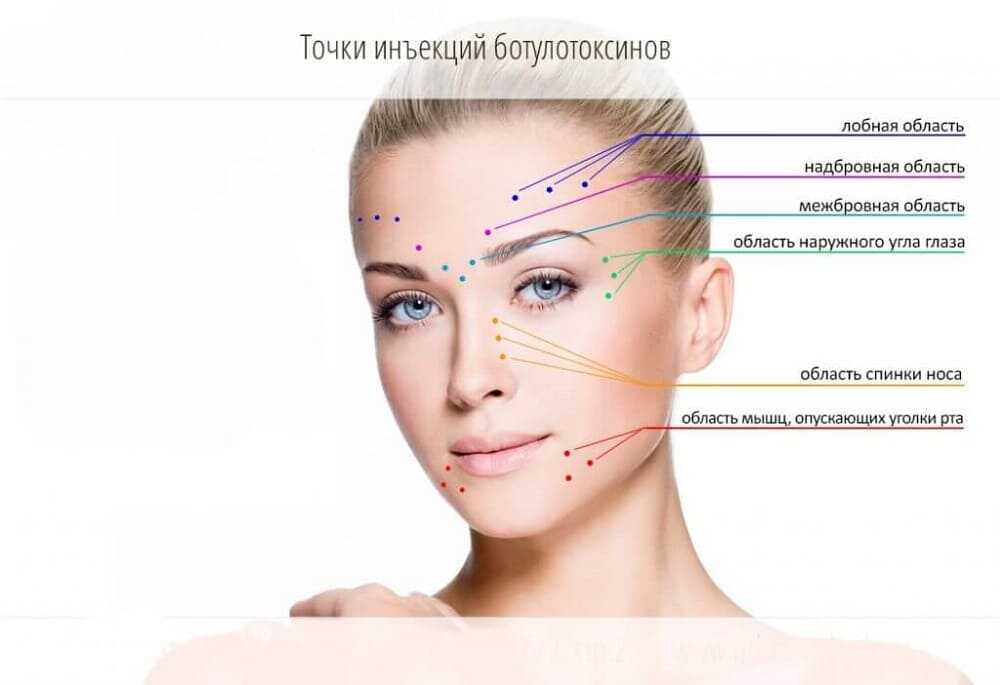 Инъекции могут делаться во все точки лица и шеи. Для каждой зоны существует конкретная дозировка:
