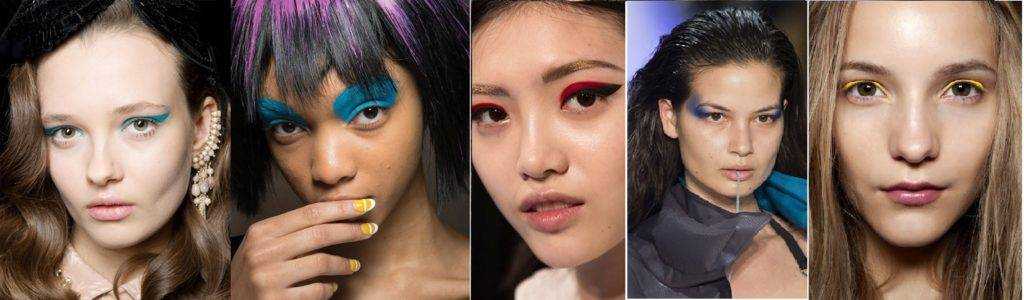 Тренд на такой арт-креативный макияж, скорее всего, пришел потому, что сейчас в моде яркие оттенки ,неон, к тому же монохромный макияж уже многим поднадоел.