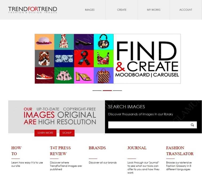 И, наконец, последний сервис – TrendForTrend. Главный офис кампании находится в Милане – мировой столице моды и дизайна. Именно TrendForTrend используют редакторы европейских модных журналов для составления коллажей. И неудивительно – здесь собраны свежие модные тенденции и изображения очень высокого качества. Изображения, загруженные TrendForTrend, отформатированы следующим образом: формат jpg с минимальным размером пикселей 1800×2500, который идеально подходит для традиционной печати. TrendForTrend ежедневно обновляется последними коллекциями ведущих мировых брендов.