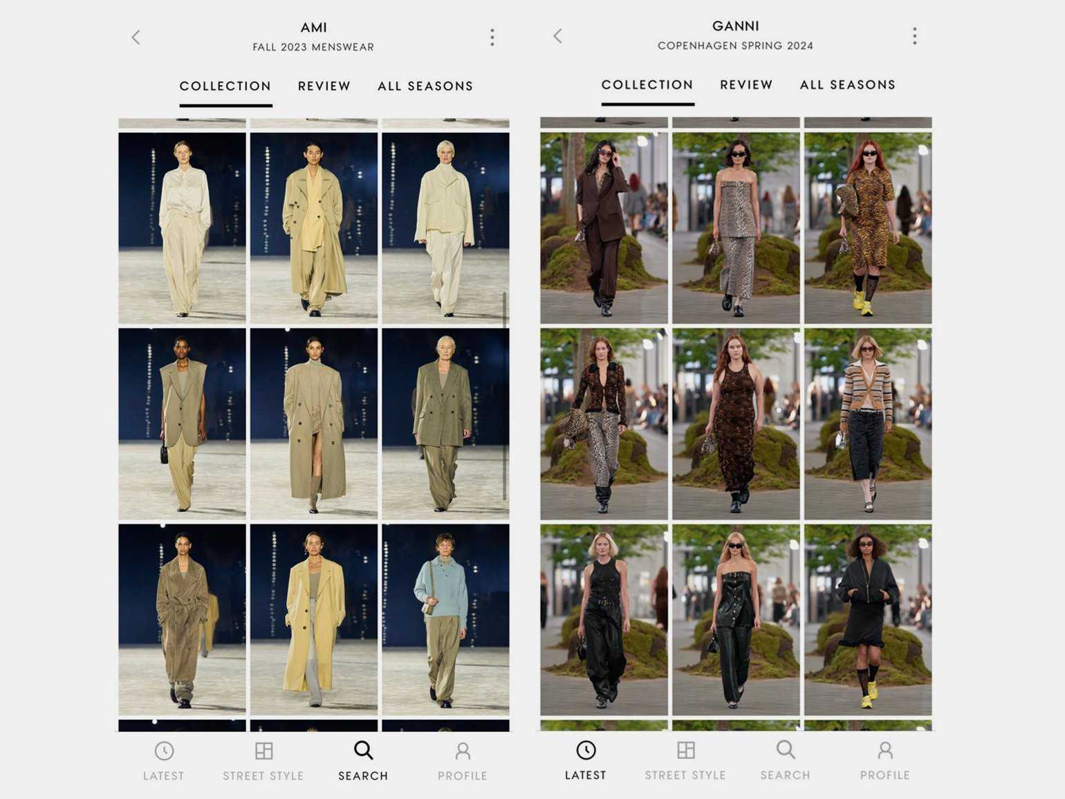 Коллекции Ami и Ganni в приложении Vogue Runway. Даже если ваша аудитория — женщины, обязательно смотрите отчёты с показов MenswearСкриншот: Vogue Runway / Skillbox Media