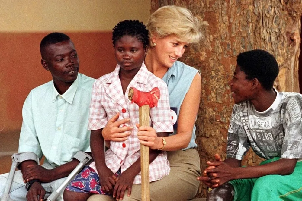 Принцесса Диана уделила особое внимание тем, кто страдает от ВИЧ / СПИДа, противопехотных мин, раком, проказой и беженцам, многие из которых выходят за рамки обычного королевского беспокойства. Помогая этим причинам, она стала покровителем нескольких организаций, включая Британский Королевский Крест и Сеть выживших после наземных мин, и была президентом Детской больницы на Грейт-Ормонд-стрит с 1989 года до своей смерти