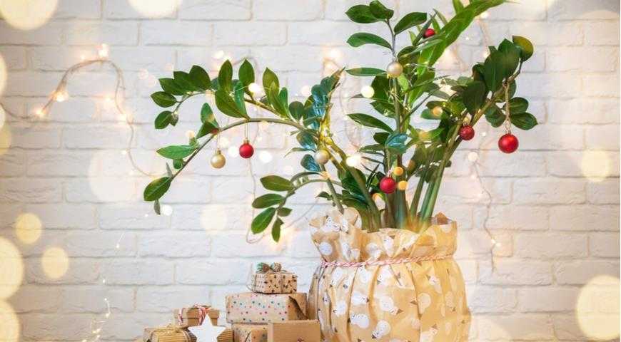 Любой из перечисленных цветков можно декорировать на свое усмотрение — разместить в горшке или рядом с ним елочные бусы, мишуру или яркие шары и создать оригинальную праздничную композицию.