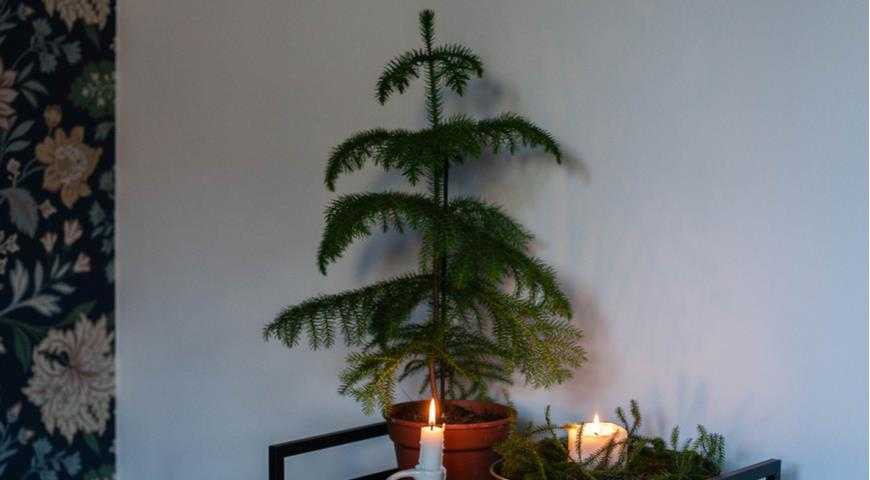 Не зря араукария разнолистная (Araucaria heterophylla) стоит первая в этом списке. Она больше других похожа на ёлку, правда не имеет присущего ёлке запаха. К тому же, это единственное хвойное растение, которое выдерживает зимовку при температуре +16 °С (нижний предел температуры — около +5 °С).