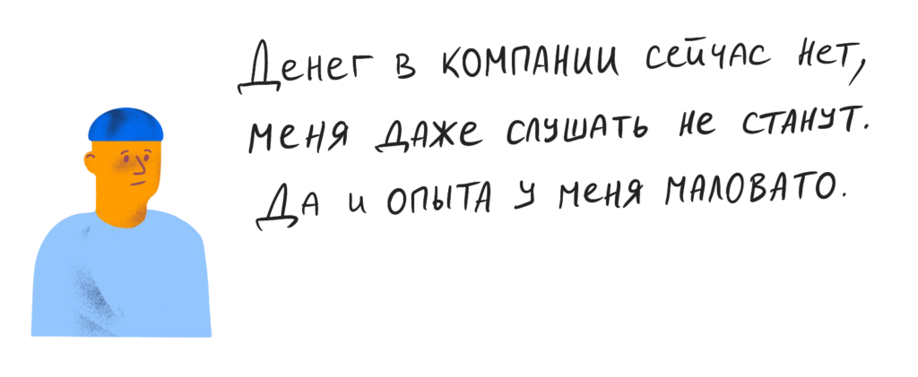 Знакомьтесь, Василий. Ему скучно на должности менеджера, да и денег хочется побольше. Василий давно хочет дорасти до руководителя отдела, но еще даже не говорил об этом с начальством. Он объясняет это так: