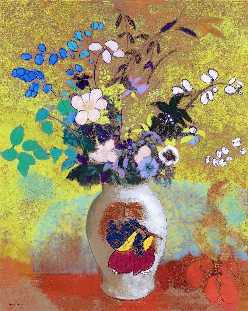 Тональный контраст важен для создания стройной композиции, но это не всегда единственный приём, выделяющий фигуру на фоне. Вот, например, картина Одилона Редона: фон написан крупными размашистыми мазками, а ваза с букетом изображена более аккуратно и имеет чёткие контуры.
