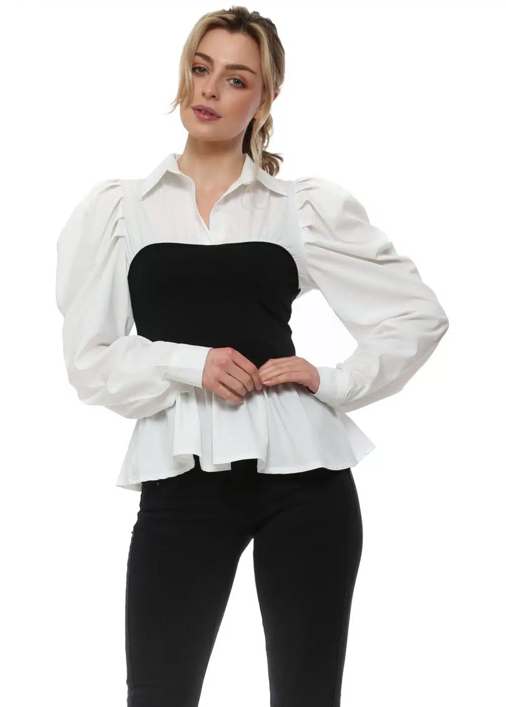 - Рубашка поверх рубашки: кожаный корсет надетый поверх большой белой рубашки на пуговицах, — это классический образ, который можно надеть как вверх, так и вниз. Дополните этот наряд парой кожаных брюк и туфлей на каблуке или превратите образ в мини-платье с парой сапог выше колен. Наденьте корсет поверх топа с рукавами-фонариками, как дань Средневековью. Зимой наденьте водолазку под корсет для дополнительного тепла.