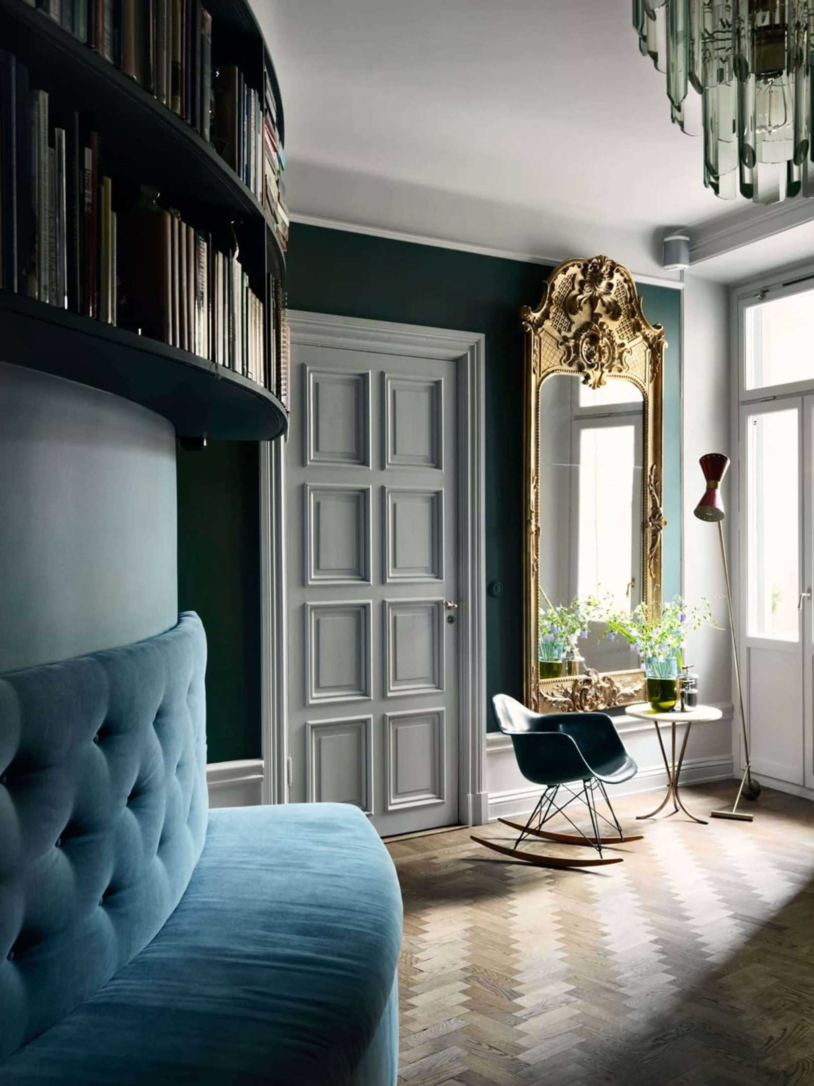 Большой популярностью сегодня снова пользуются текстиль и обои с орнаментами Уильяма Морриса, которые хорошо себя чувствуют среди современных мебельных форм. А если хочется больше стилизации, добавьте несколько ностальгических элементов. Картины в багетных рамах, настольная лампа с расшитым текстильным абажуром, кресло или пуф с каретной стяжкой, книги на полках — вдохнуть в интерьер атмосферу викторианской Англии просто.
