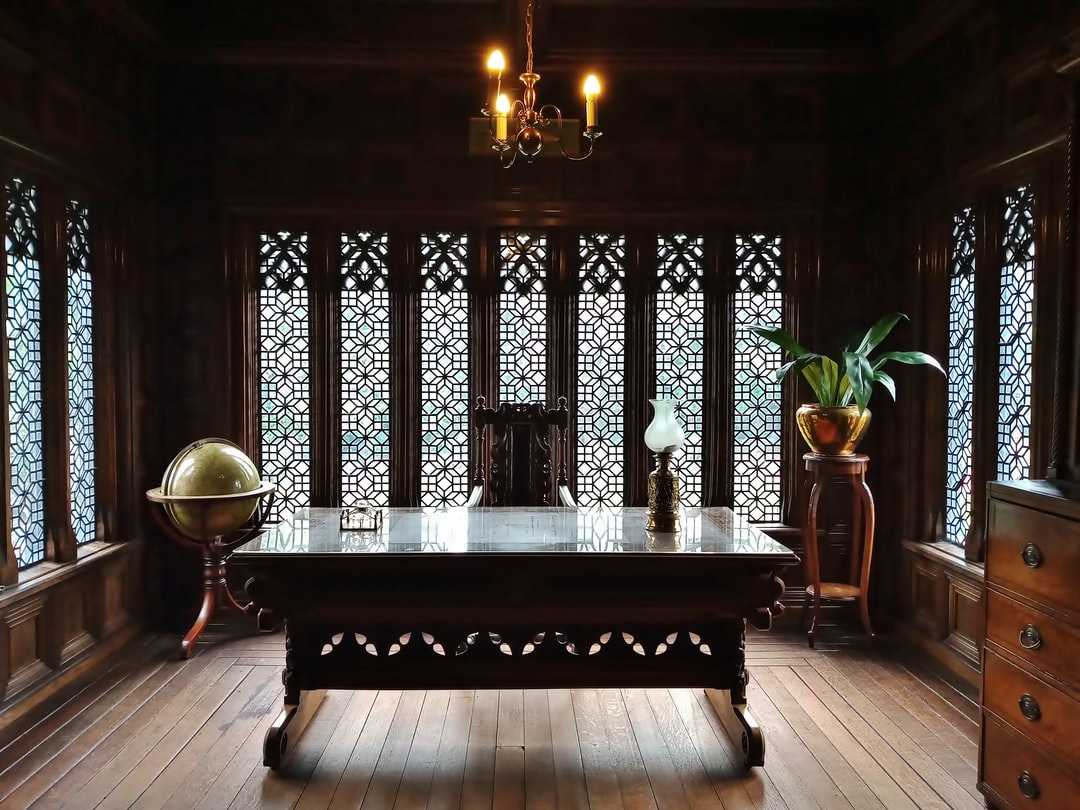 - наличие экзотики: японские ширмы, индийские сундуки, шкатулки для украшений, китайские вазы, восточные ковры, пепельницы с драгоценными камнями, чучела животных;