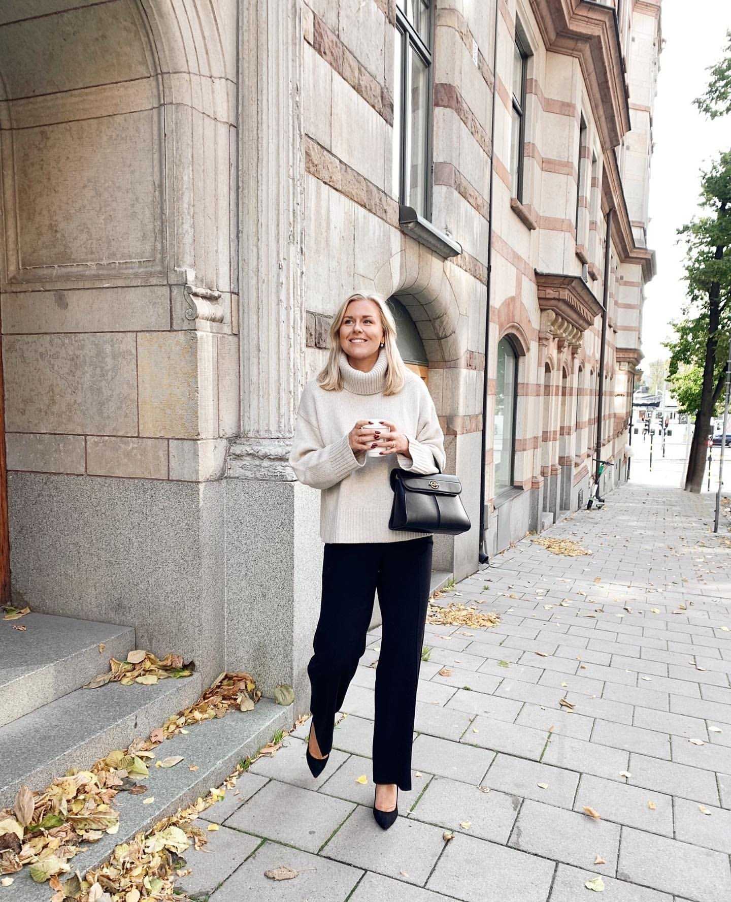 Сумку выбирают, исходя, в целом, из образа. Если свитер сочетают с классическими вещами, то сумка должна быть классического черного цвета. Возможно в форме портфеля. А вот в случае, если надеть свитер с джинсами, то подойдет рюкзак или сумка в стиле casual, которую тогда уже можно выбирать в тон обуви.