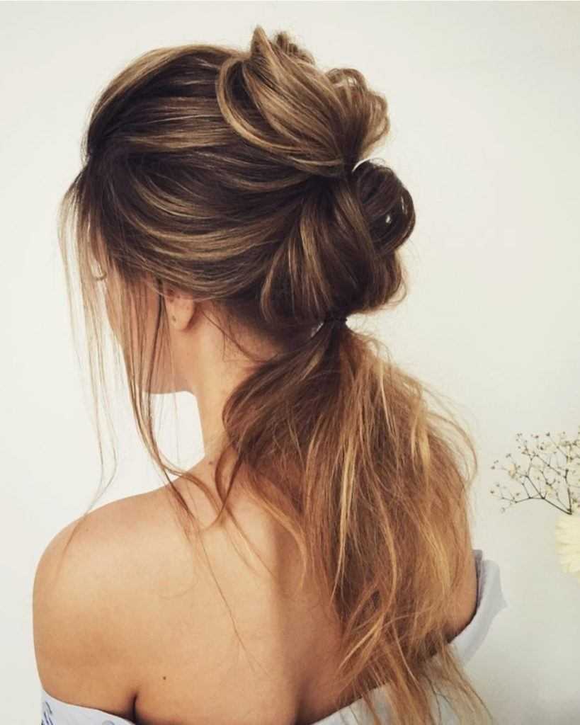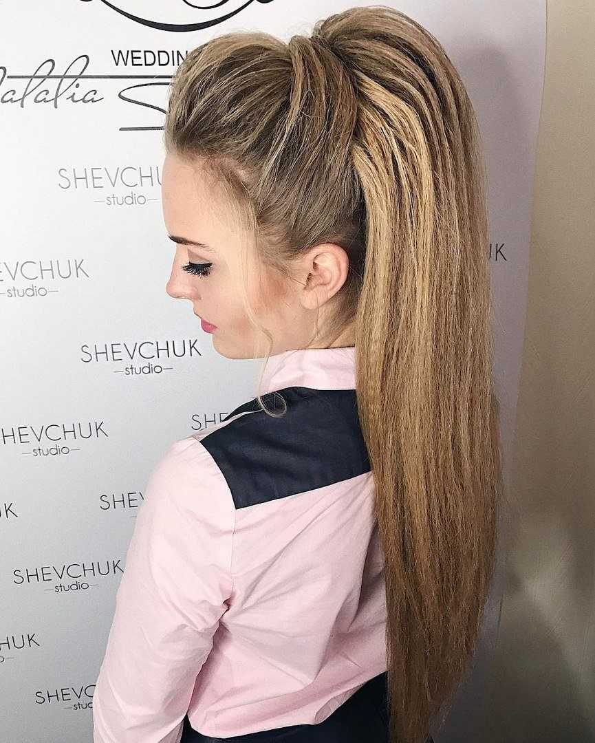 Огромное количество вариантов делает эту прическу самой популярной. Помимо классического высокого или низкого хвоста, существуют и современные варианты. Если вы динамичны, попробуйте подтянуть волосы на макушке. Хвост из пучков тоже очень модный. На укладку уйдет какое-то время, при этом она очень эффектная.