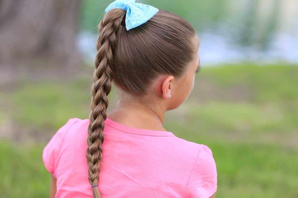 - Закрепить косу резинкой.