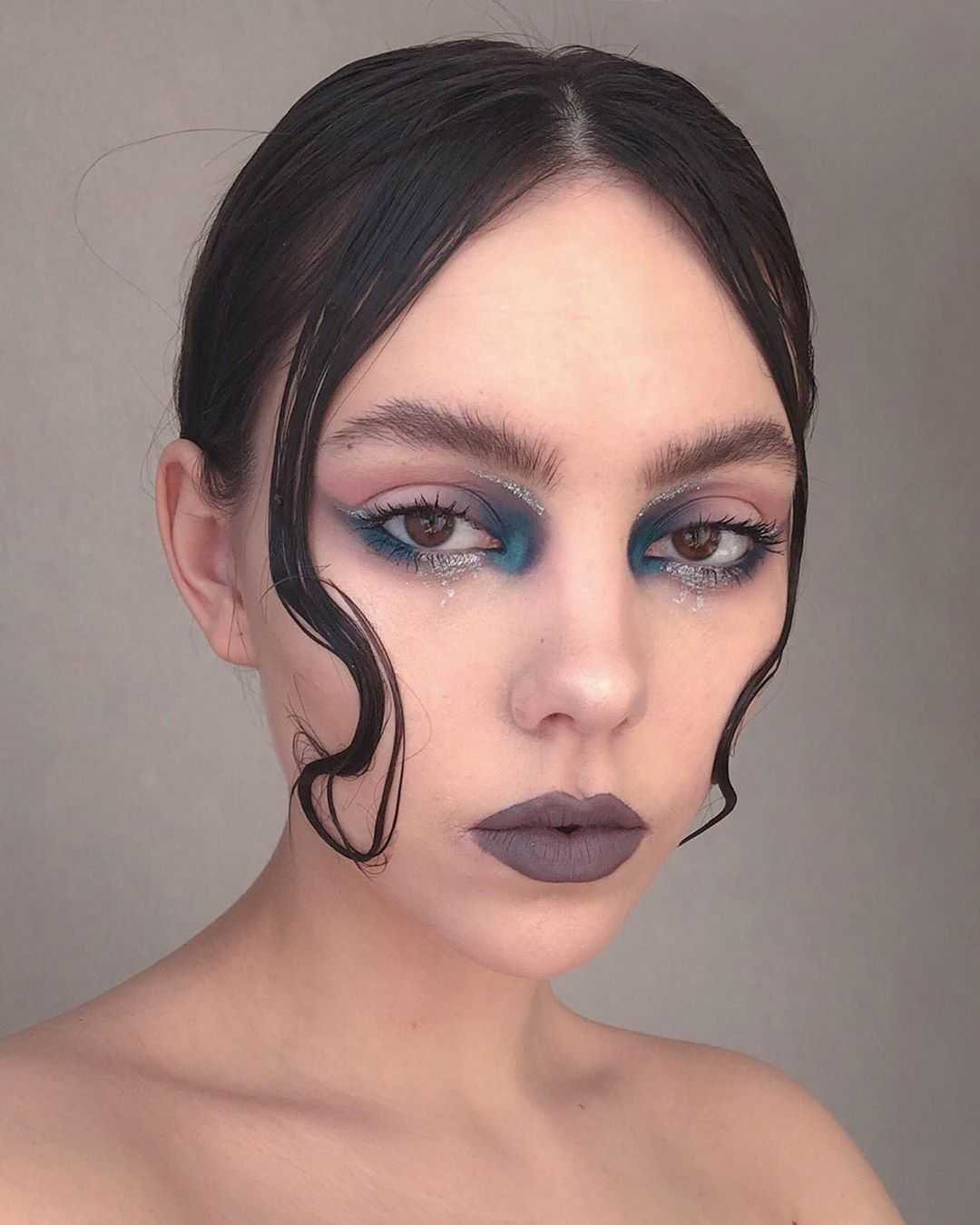 - Снежная королева. Если девушка хочет воплотить сказку в жизнь, ей идеально подойдет такой макияж. Холодные оттенки, подчёркнутые скулы помогут создать невероятный образ, который действительно сделает ее королевой вечера. Чтобы усилить эффект, к образу добавляют снежинки, камни, ресницы с инеем — все, на что хватит фантазии. Мейкап однозначно будет выглядеть шикарно, однако стоит помнить об умеренности.