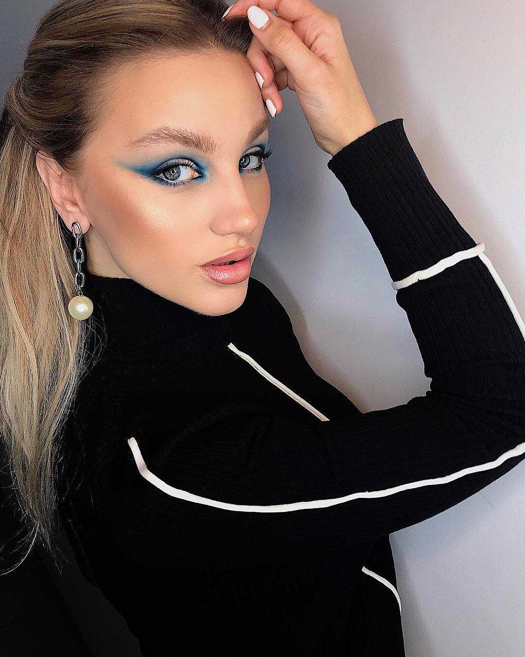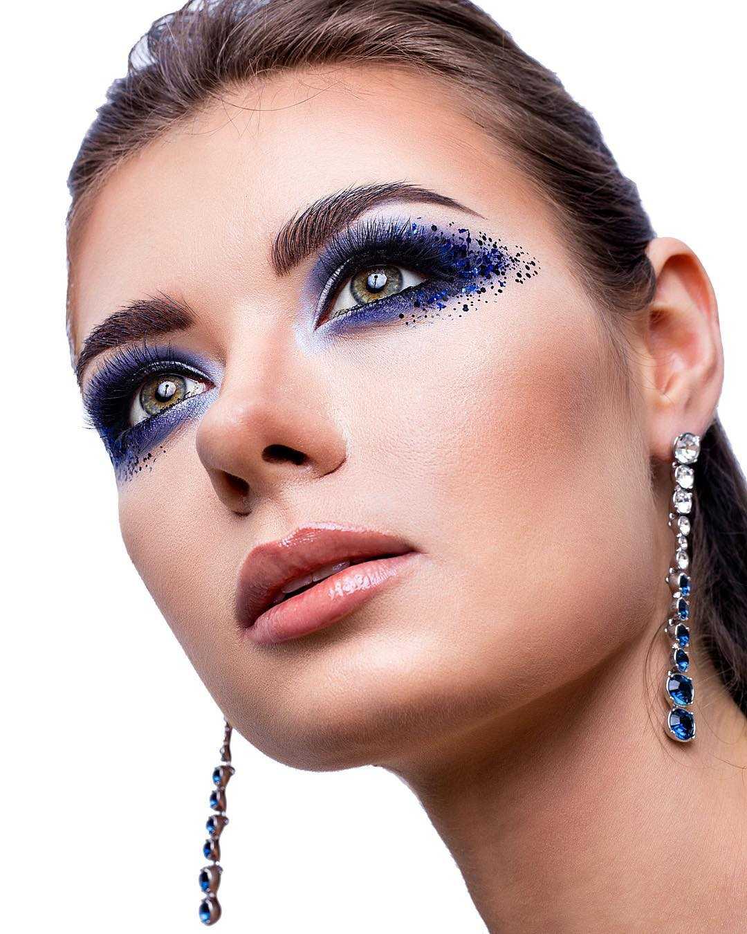 Синий цвет тоже нужно использовать с осторожностью, чтобы макияж не выглядел старомодным. Для этого необходимо подобрать правильный оттенок и текстуру косметики