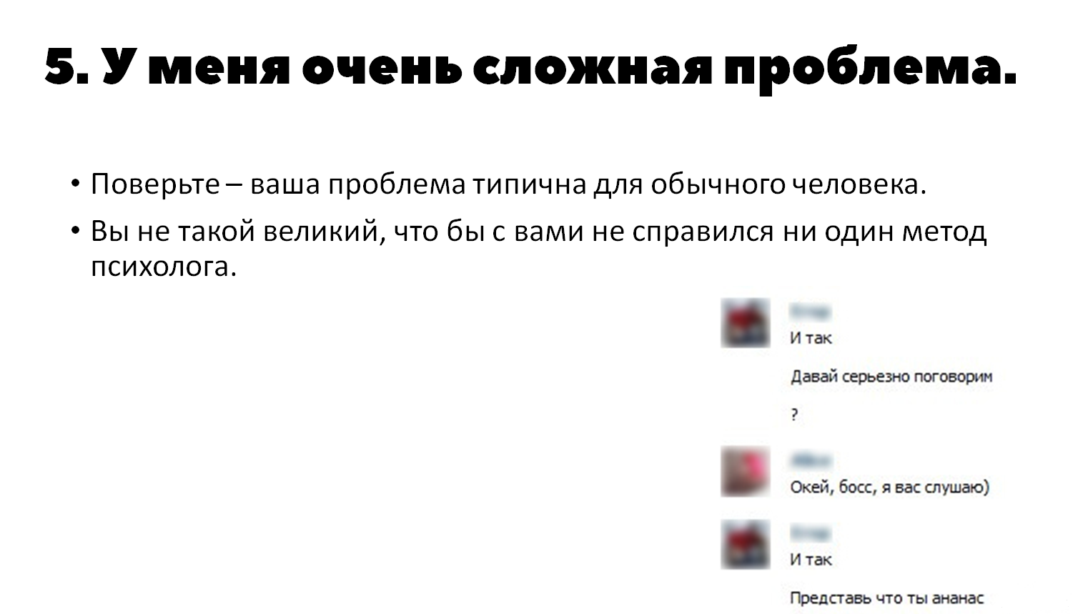 Психолог не поможет – если вы считаете, что ваша проблема очень сложная.