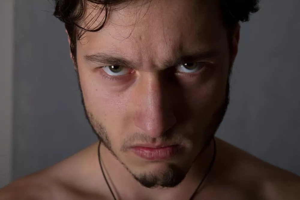 - «сверлящий», не моргающий взгляд в паре с ритмичным дыханием однозначно говорит о набирающей силу злости;