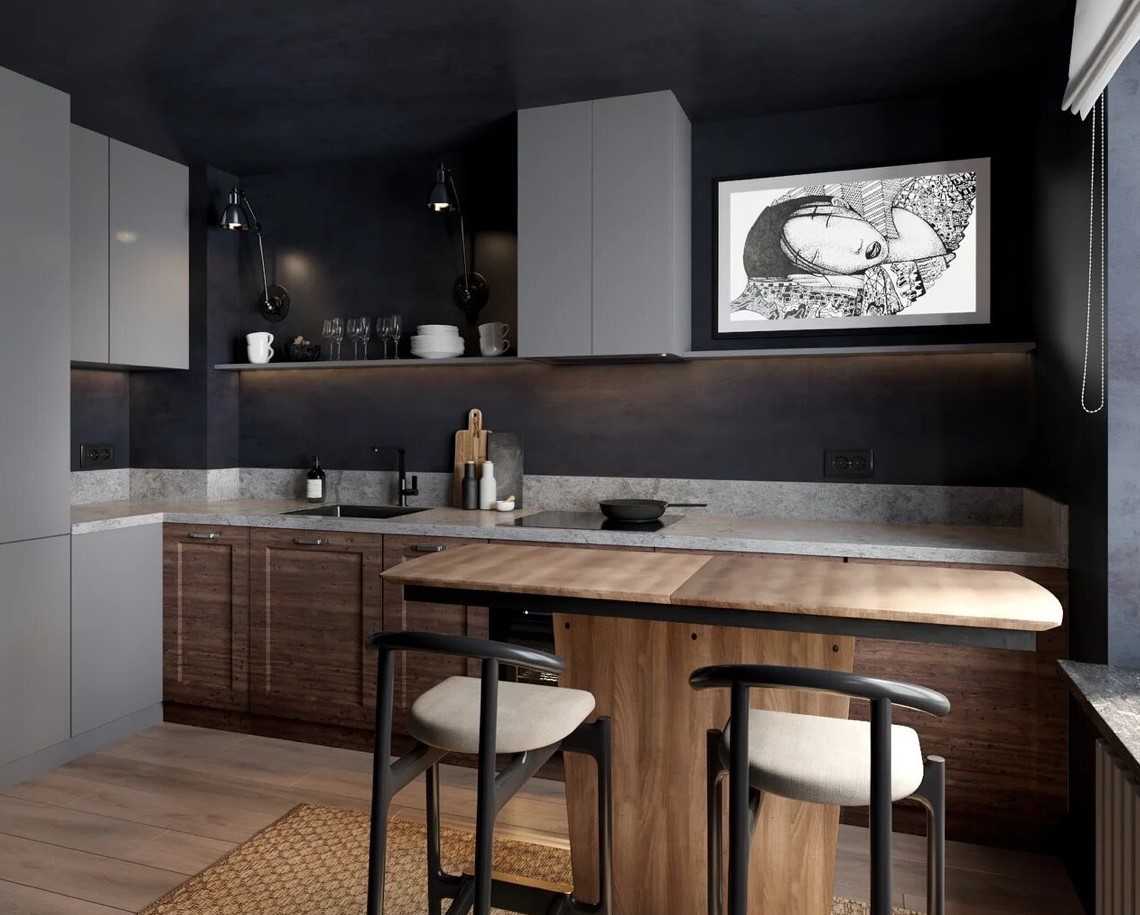 Здесь также царят лаконизм и простота. Кухонная техника и посуда укрыты от взглядов за стенками гарнитура. Идеальны натуральные дерево, камень, керамогранит, керамическая плитка. Декоративные элементы, столешница и кухонный фартук имеют натуральный рельеф и природный рисунок.