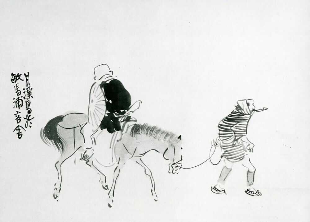 Монах Рэнсё едет на коне задом наперед, Мацумура Гошун, около 1784 г.