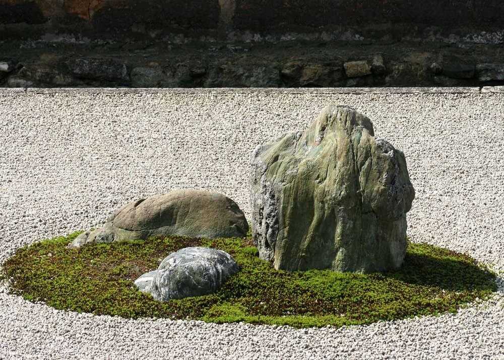 В храме Рёндзи (Киото, Япония) есть чайная и чайный сад, построенные в 17 веке. Рядом с чайным домиком находится знаменитый каменный бассейн с водой, непрерывно текущей для ритуального очищения. Написанные на поверхности каменной чаши четыре китайских иероглифа не имеют значения при чтении отдельно. Но в сочетании с квадратными границами центральной чаши их можно читать как «ware tada taru wo shiru», что буквально переводится как «я знаю только достаточно» или как «Я знаю только удовлетворение».