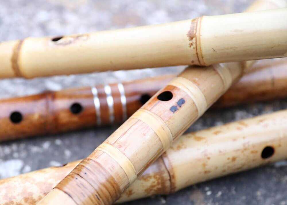 Сякухати , традиционная японская флейта , также воплощает в себе идеалы ваби саби. Он может похвастаться своей простой структурой. Грубая бамбуковая трубка, открыта с обоих концов и имеет пять отверстий. В свою очередь нижний кончик сделан из корневого конца бамбукового стебля. Даже если это кажется незамысловатым, сякухати, тем не менее, является произведением искусства, мастерства и инженерии. Хонкёку (оригинальные пьесы), играющая на флейте японскими монахами дзэн, также считается ваби-саби.