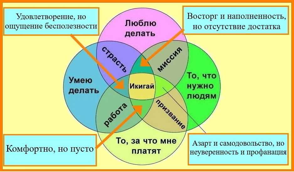 Это всего лишь поверхностное знакомство с моделью, но освоение четырех областей техники икигай отвечает на вопрос «С чего начать?» и дает подсказку для нахождения собственного пути.