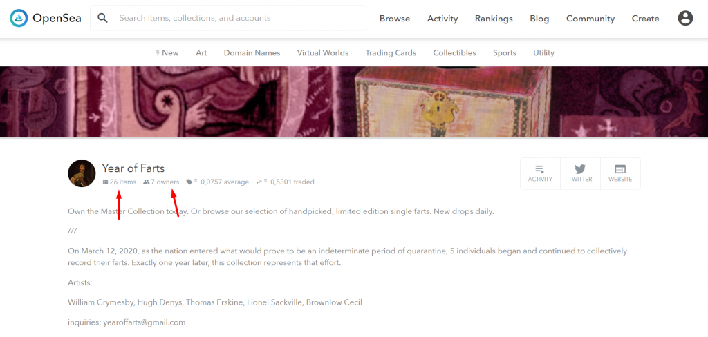 OpenSea – торговая площадка для цифровых товаров, принадлежащих пользователям, которые включают предметы коллекционирования, игровые предметы, доменные имена, цифровое искусство и другие активы, поддерживаемые блокчейном. Платформа имеет собственную рейтинговую страницу со статистикой по NFT.