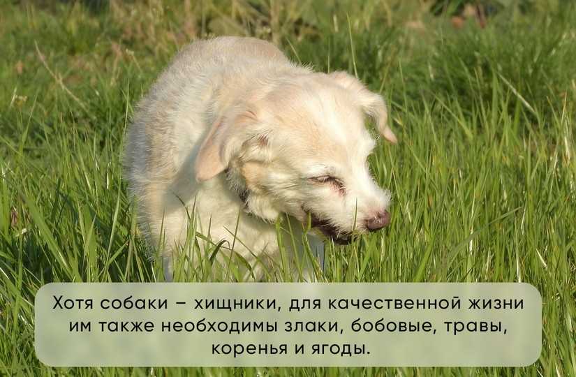 Начнем с главного: собака – хищник, но хищник не строго плотоядный. В условиях, когда мяса мало или нет совсем, собаки способны продержаться на других источниках энергии. Более того, в определенном количестве злаки, бобовые, травы, коренья и ягоды необходимы этим животным для качественной жизни
