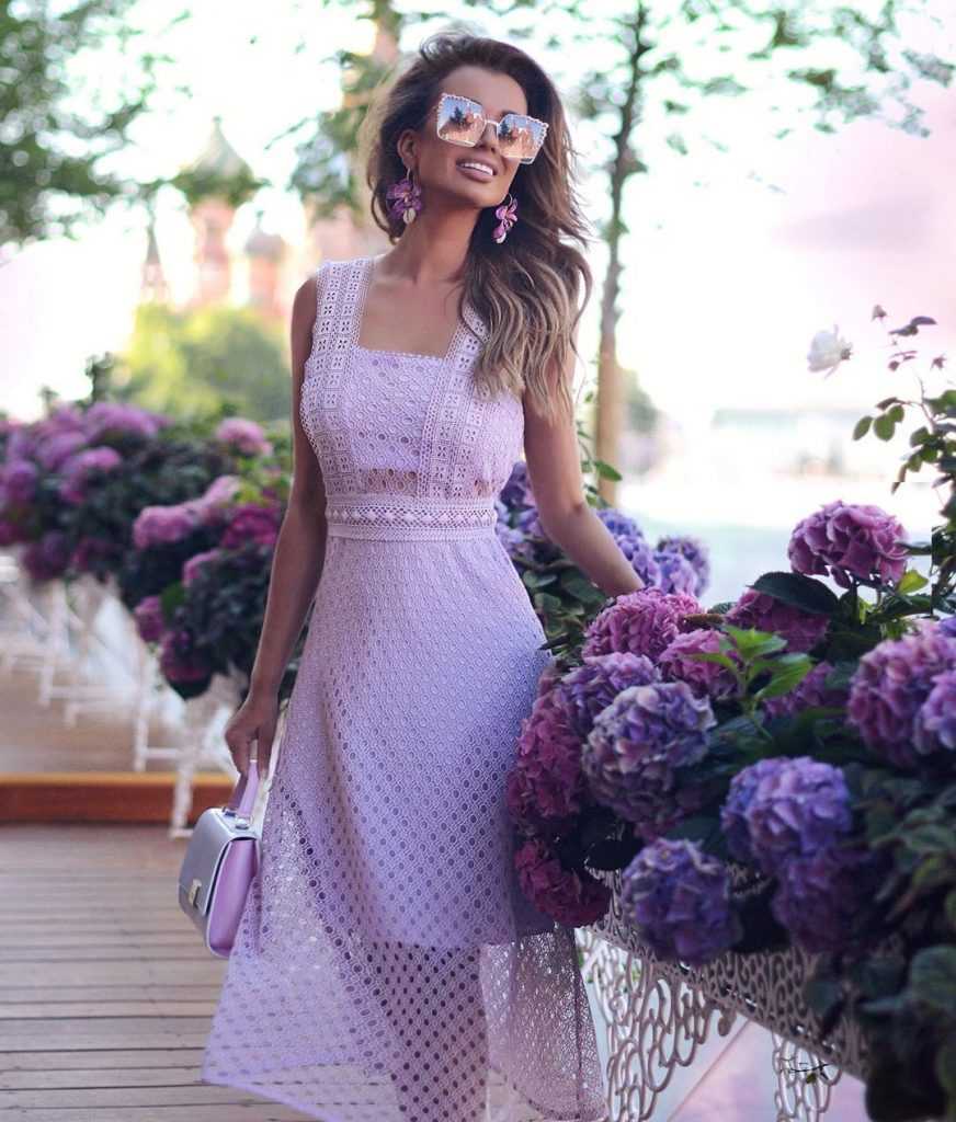 Оттенки лилового в теплое время можно использовать в качестве основного. Женственно будет смотреться платье в стиле total look. При правильном сочетании лилового с другими цветами в одежде можно создать благородный и женственный образ.
