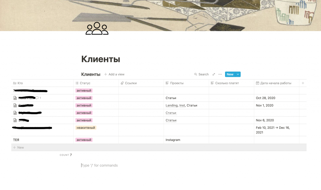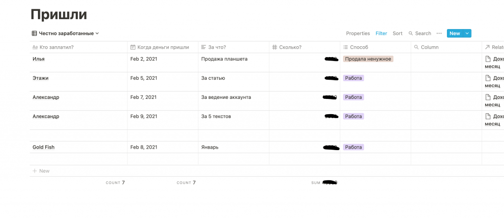 Приходят деньги – вносите данные, кто и за что заплатил, в базу Notion. А спустя несколько месяцев с помощью фильтров и сортировки увидите наиболее выгодные проекты и успешные месяцы.