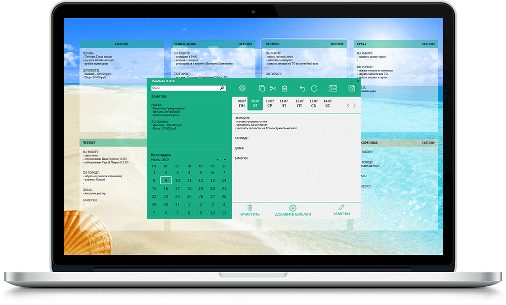 Теперь вся неделя перед глазами. Используйте десктоп Вашего компьютера продуктивно. Вы можете настроить отображение заметок прямо на рабочем столе Вашего ПК. Редактируйте заметки прямо на рабочем столе.
