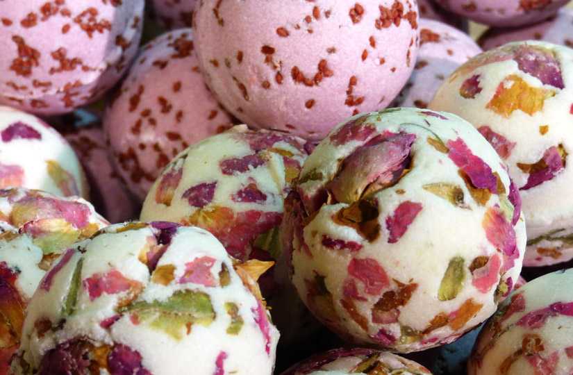 Бомбочки для ванн могут быть различных размеров, форм, оттенков, у них также может быть разный перечень дополнительных ингредиентов. Но в основе абсолютно любой бомбочки есть два главных компонента — пищевая сода и лимонная кислота. Именно их контакт с водой и вызывает эффектное шипение и узоры на поверхности воды.