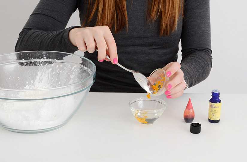 Например, чтобы сделать бомбочку обычного размера своими руками в домашних условиях, нужно смешать их в миске: