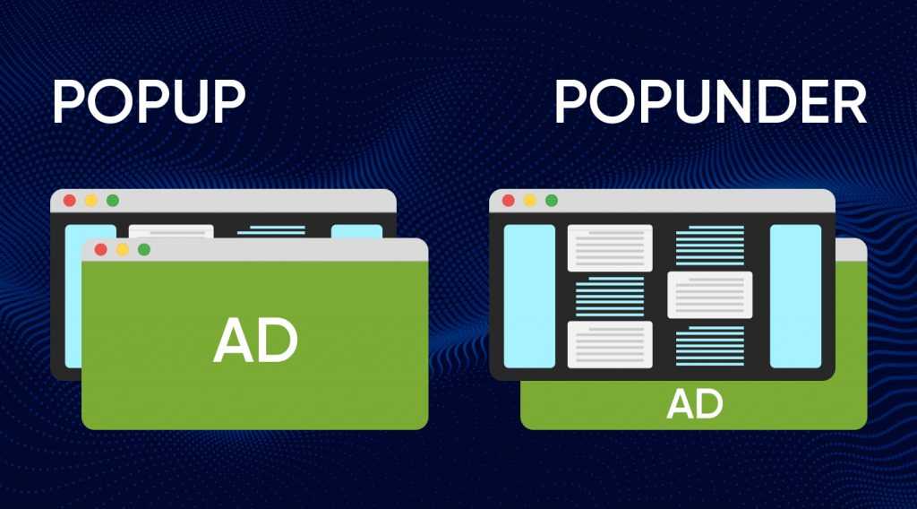Когда всплывающее окно перекрывает контент — это поп-ап, а когда оно появляется за страницей — поп-андер. Оба формата можно использовать для адалт трафика