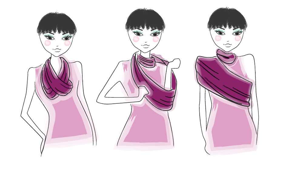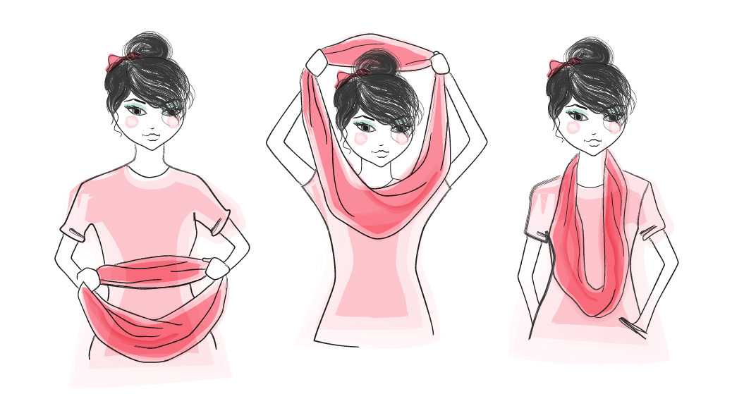 Если вы не знаете как завязать шарф хомут на пальто, тогда выберите простые техники — туника, палантин и капюшон. Освоив их, вы будете выглядеть ярко и модно.
