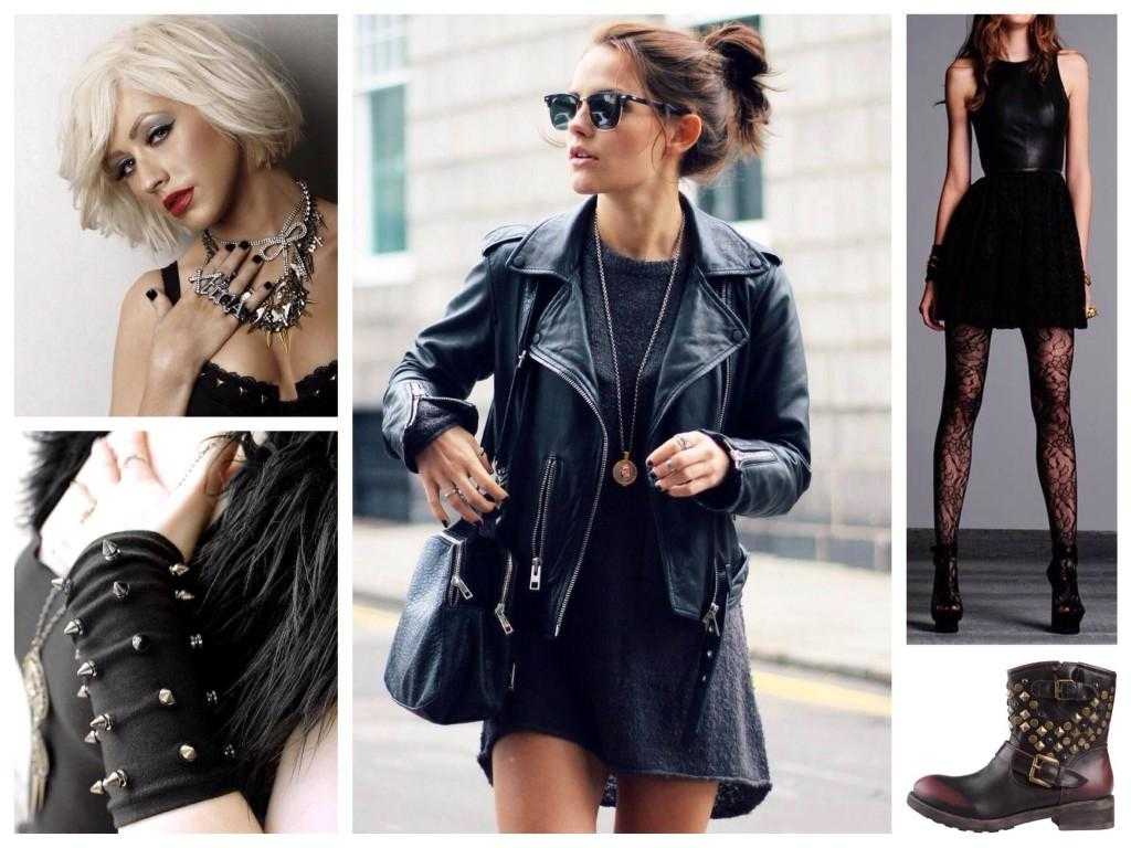 Женская одежда в рок стиле призвана выделять свою хозяйку из толпы, в идеале её надо показывать на сцене. На рок в этом стиле намекают кожаные обтягивающие штаны, шипованные куртки и пиджаки, кожаная обувь с заклепками. Но все это вызывающе-ярко и нескучно.