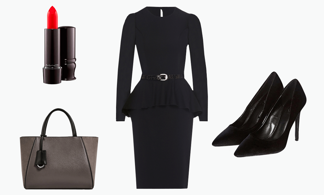 Платье Grey Cat, 7590р. Туфли TopShop, 3199р. Сумка Zara, 1999р. Помада М.А.С, 1450р.