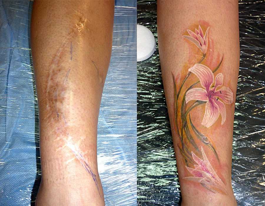 Обратите внимание – после появления шрама, а не после события, в результате которого появился шрам. Лучше всего наносить рисунок к концу второго года после образования шрама, рубца или другого подобного дефекта