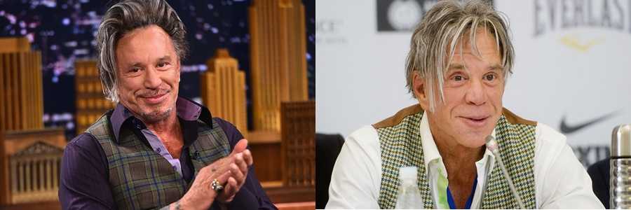 Звезда фильмов «Девять с половиной недель» и «Дикая орхидея» завершает наш список с фото актеров и актрис, которые носят парики, шиньоны и системы для волос. Микки прошел путь от самого сексуального актера до старой развалины. Травмы, полученные во время профессиональных боксерских боев, эксперименты с наркотическими веществами и алкоголем стали причиной ужасного внешнего вида. Перекаченные силиконом губы, изуродованное пластикой лицо – так сегодня выглядит некогда любимый миллионами исполнитель. Довершает дело отсутствие волос, которое Микки пытается скрыть с помощью несуразных париков.