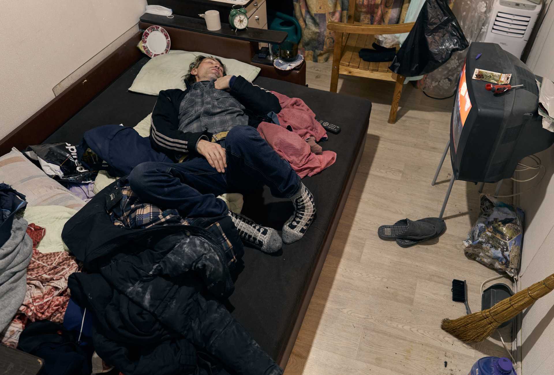 «Рома снимал меня в быту: как я пришёл с работы уставший и прямо в одежде уснул, как я вышел после душа, как я работаю на моём участке, возле контейнеров. Там же я увидел, что кто-то выкинул кресло, сел в него — и Рома меня так щёлкнул. Я просто жил своей жизнью», — вспоминает дворник.