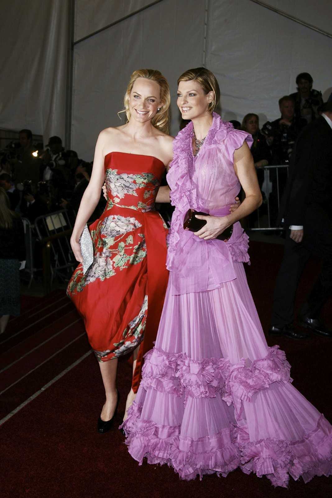 Эмбер Валлетта, Линда Евангелиста на Балу Института костюма Met Gala 2006 в Метрополитен-музее в Нью-Йорке, 1 мая 2006 г.